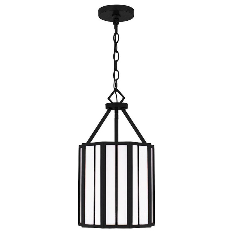 The Martinique mini pendant has sculptural appeal in high-contrast black and white. With matte black elements suspended by a wrought iron-inspired chain, this piece feels subtly rustic yet works in today's modern spaces. This piece also works well in multi
