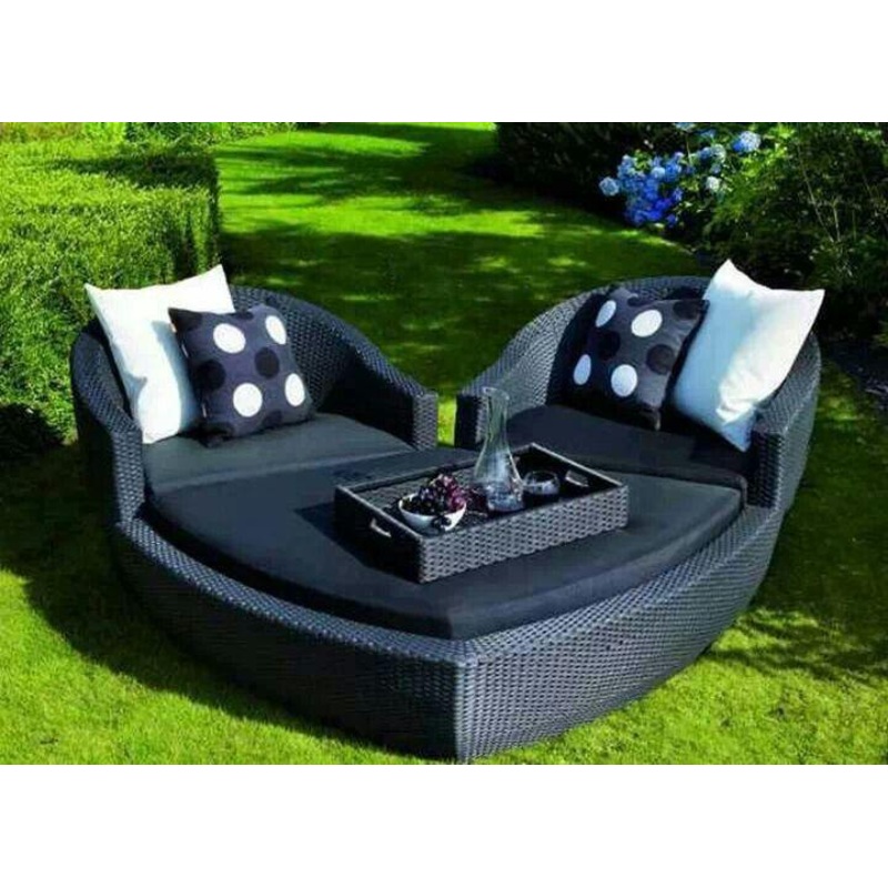 Turn your backyard into a comfortable lounge with this stylish garden set. The metalframes are covered with durable synthetic rattan and low seating, back-supporting cushions add extra comfort. Modern design with sleek lines and an attractive color scheme provides a luxury feel. An ultimate garden set with ample seating fora couple to enjoytheir outdoor living space.