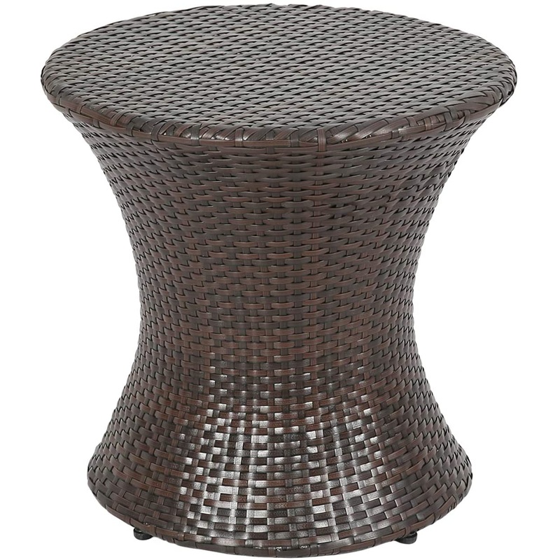 Rattan Hour glass Side TableOutdoor Wicker Side Table will bring you a great addition to you patio decor. Constructed of powder-coated steel frame, our table is durable and stain resistant. The high-quality wicker is UV/weather-resistant, which will be Lig