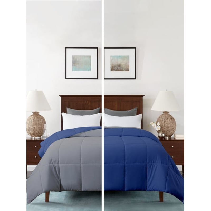 Razzai Reversible Microfiber AC Room Blue & Grey 100 GSM Single Bed Quilted Comforter