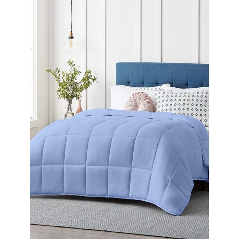 The Razzai Blue Poly fill Basic Comforter offers a cozy experience with its soft poly fill fabric, perfect for enhancing the comfort of your bedding.Disclaimer: All other items in the image are only for display purposes and will not be a part of the delivery content. Product colour may slightly vary due to photographic lighting sources. Country of Origin – India.