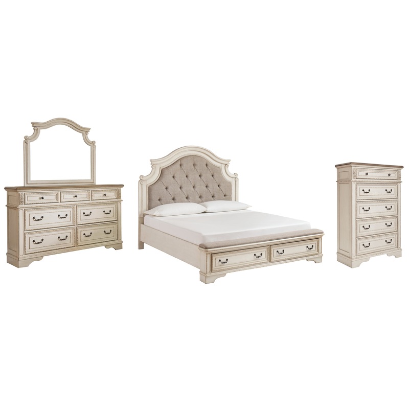 Realyn King Upholstered Bed with Mirrored Dresser and Chest