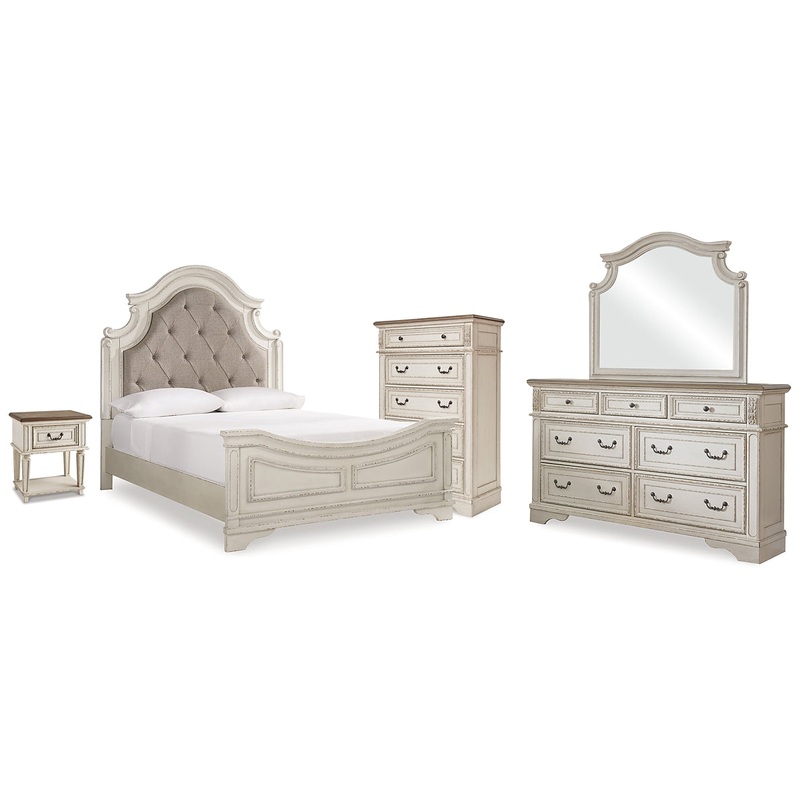 Realyn Queen Panel Bed Dresser, Mirror, Chest and Nightstand
