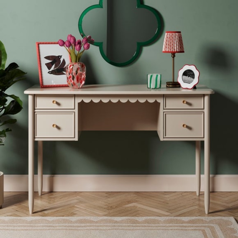 Adding an extra touch of sophistication, this classic dressing table features exquisite scallop detailing along the edges, enhancing its visual appeal and adding a touch of refined elegance. The scallop motif exudes a sense of classic charm and effortlessly complements a variety of interior styles, from traditional to modern. Whether youre getting ready for a glamorous night out or simply pampering yourself, this dressing table offers generous table space for functionality whilst being able to display your favourite perfumes, trinkets, and personal keepsakes. With four spacious drawers this table offers ample storage options for your makeup, accessories, and other essentials. Say goodbye to clutter and hello to organized bliss as you neatly arrange your items within easy reach. Complimenting this dressing table is a full collection of bedroom furniture, including a matching wardrobe, chest of drawers and bedside tables, creating a harmonious look within the bedroom.
