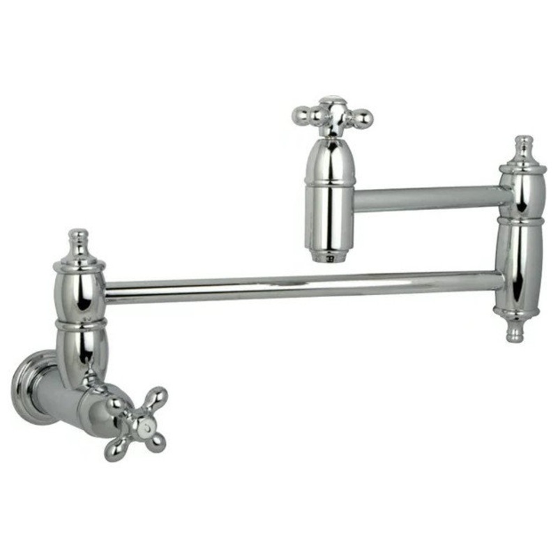 -Solid brass construction -Drip-free ceramic disc cartridge -Wall mount single hole installation -Convenient swing arm spout -Swivel double jointed spout extends up to 20" -7-15/16" spout height -1/2" IPS inlet connection -3.8 GPM/14.4 LPM spout flow rate