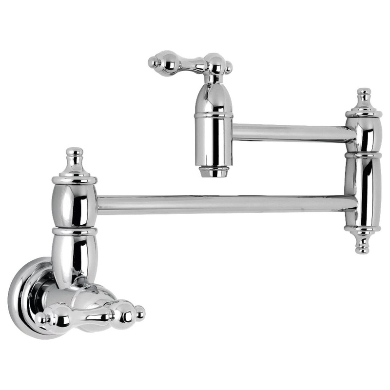 -Solid brass construction -Drip-free ceramic disc cartridge -Wall mount single hole installation -Convenient swing arm spout -Swivel double jointed spout extends up to 20" -8" spout height -1/2" IPS inlet connection -3.8 GPM/14.4 LPM spout flow rate at 60