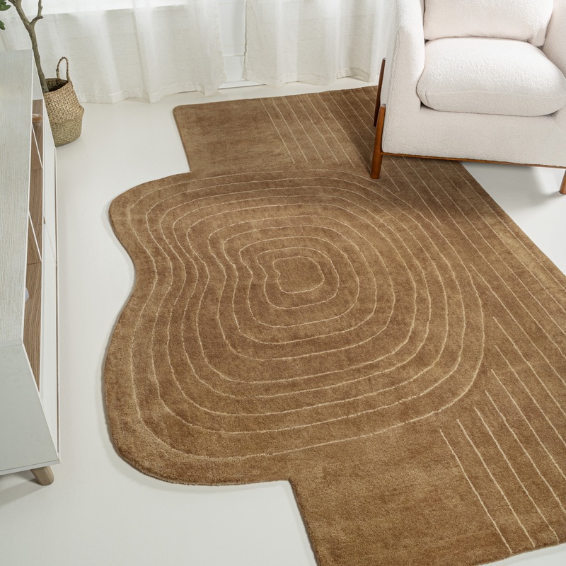 -This rug incorporates different shades of light brown and beige to create a subtle yet bohemian abstract design