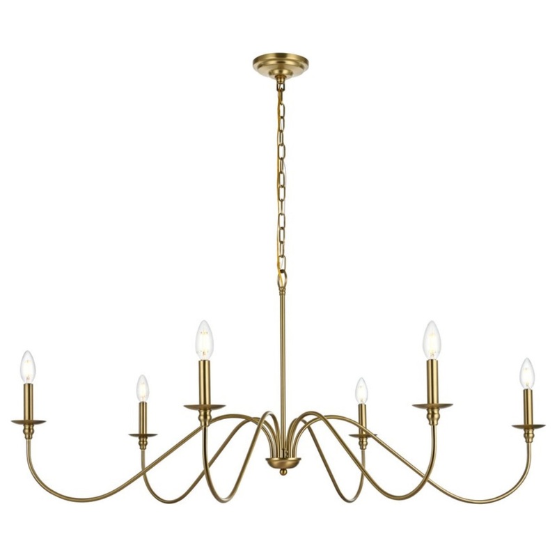 Rohan 48 inch chandelier in Satin GoldIlluminate your home with the enchanting brilliance of our Indoor Iron 6 Arm Chandelier. This exquisite piece is not just a source of light; it's a statement of elegance and style. The chandelier's dimmable feature all