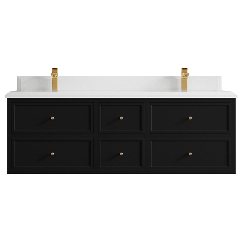 Willow Collection Roswell 60 x 22 Double Sink Bath Vanity in Black with 1.5" Straight/ Mitered Edge White Quartz The Roswell Collectionis a stunning bathroom vanity that exudes artistry and quality craftsmanship. This premium vanity is made from solid Birc