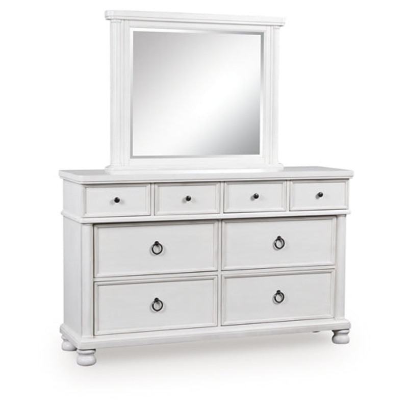 Taking a laid-back approach to casual traditional design, this artfully crafted dresser with mirror combines classic elements with a clean modern approach. Its rubbed antiqued white finish exudes a comfy, timeless appeal that's sure to carry you away to a