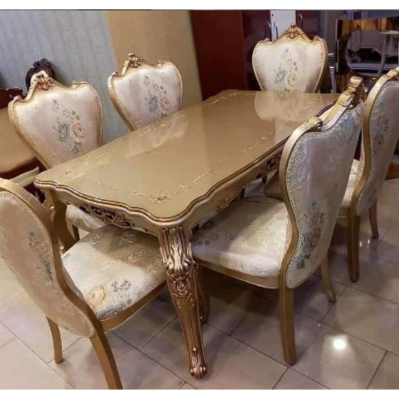 The Brown colour and patterned Dining Table has a unique design that will enhance the natural beauty in your room and compliment your modern interior perfectly.Royal designleg framePolishedtopCurved legsSeats up to6 people6 chairsDimensions:Table - L 160cm