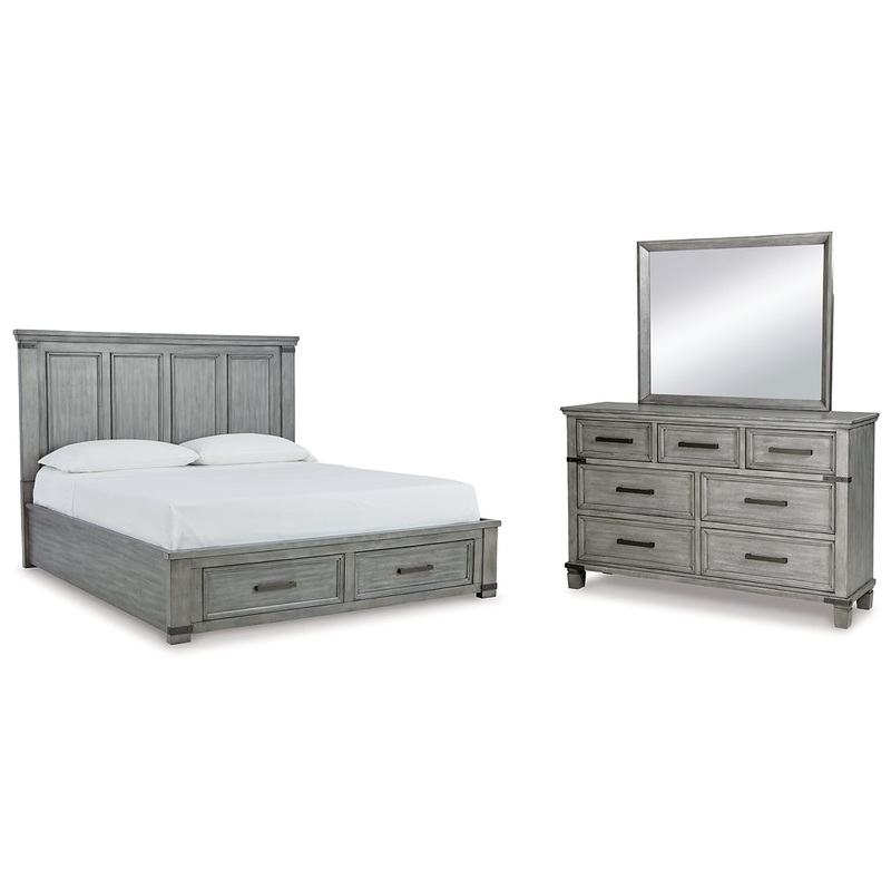 What's old is what's new with this bedroom package. Serving up a fresh look in urban farmhouse style, this set features a light weathered gray finish with dark aged bronze-tone bar pulls and metal straps for a casually cool sensibility. Profiled frames and