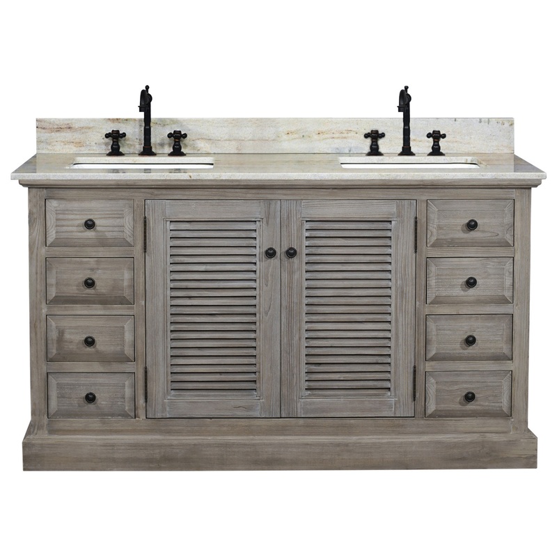 Rustic Double Sink Vanity With Coastal Sands Marble Top With Rectangular Sink – Transitional – Bathroom Vanities And Sink Consoles – by inFurniture Inc.,