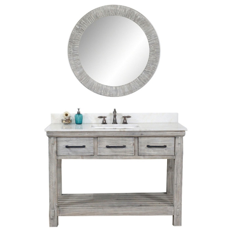 Rustic Fir Single Sink Vanity In Gray Driftwood With Arctic Pearl Quartz Top – Farmhouse – Bathroom Vanities And Sink Consoles – by inFurniture Inc.,-WK8448-G+AP TOP
