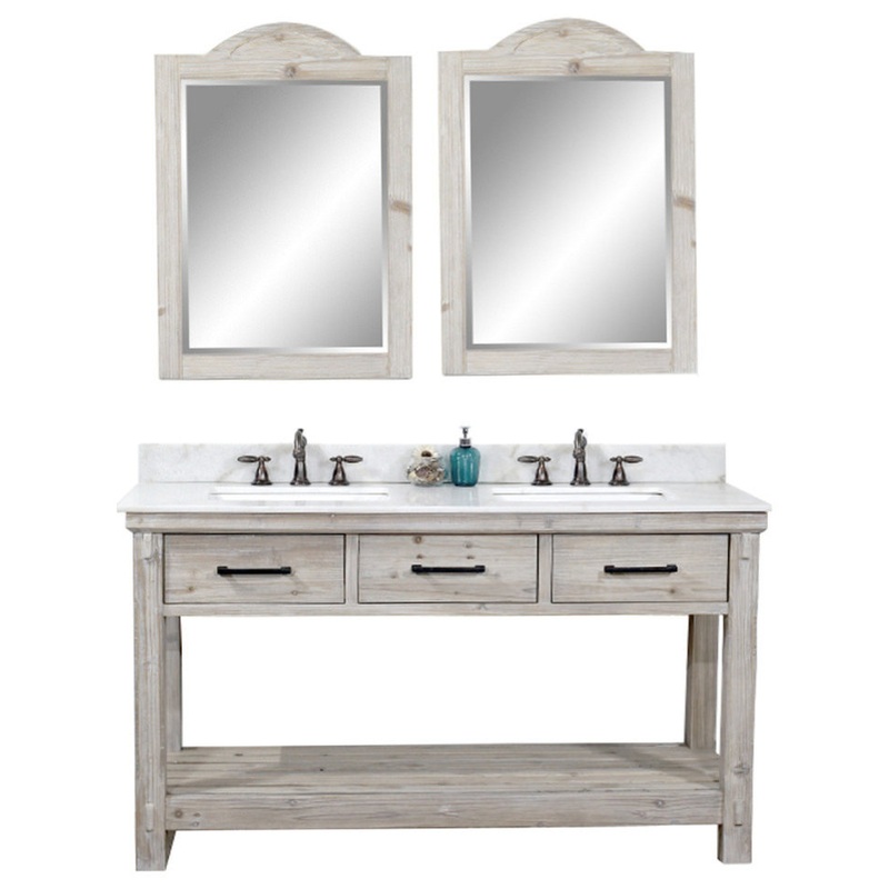 This rustic style bathroom vanity will be perfect for any bathroom. The distressed driftwood finish gives the vanity a unique style. Come with a top, backsplash and an under mounted ceramic sink