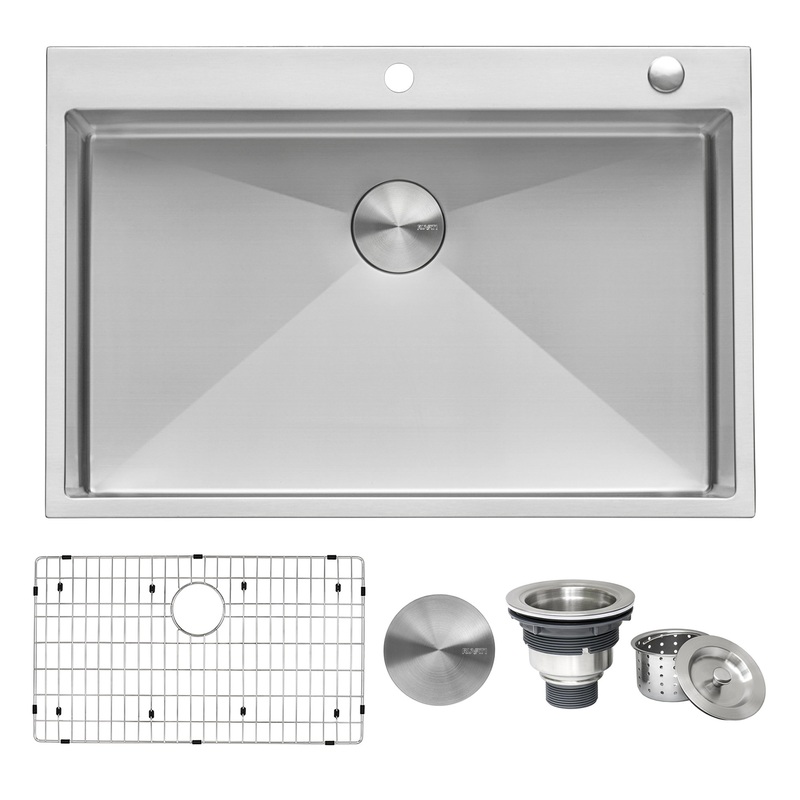 A RVH8005 new landmark in overmount design, the deep square bowls and tight-radius corners of this Tirana series sink will easily drop into the trendiest kitchen. The edgeX 10mm Tight Radius inside corners offer a slightly curved corner for easy cleaning while at the same time retaining the resolutely modern look. This Tirana sink comes pre-drilled with two holes for faucet and soap dispenser installation. This sink comes in a standard 33-inch by 22-inch dimension, so it will retrofit in most existing cutouts from your old overmount sink.