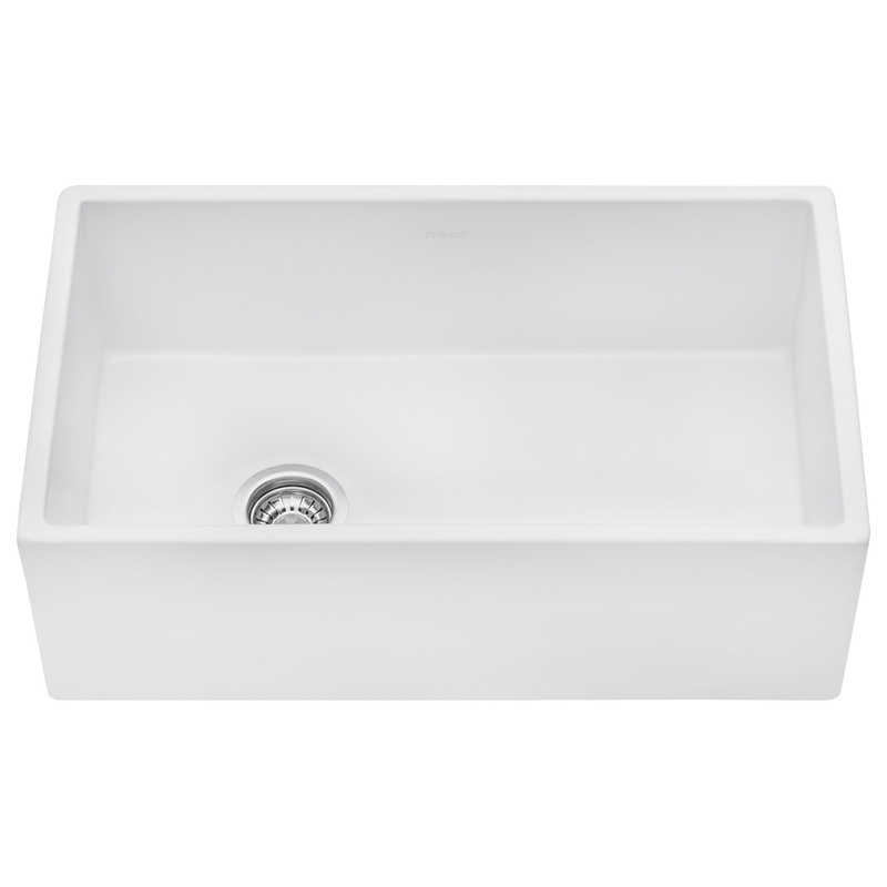 Ruvati RVL2018W 30-inch Fireclay Farmhouse Offset Drain Kitchen Sink Single Bowl White - Left or Right Drain. Product ID198666407Manufactured ByUserSold ByBlue BathSize/WeightW 30" / D 9" / H 10" / 70 lb.MaterialsFireclayAssembly RequiredYesCategoryKitchen
