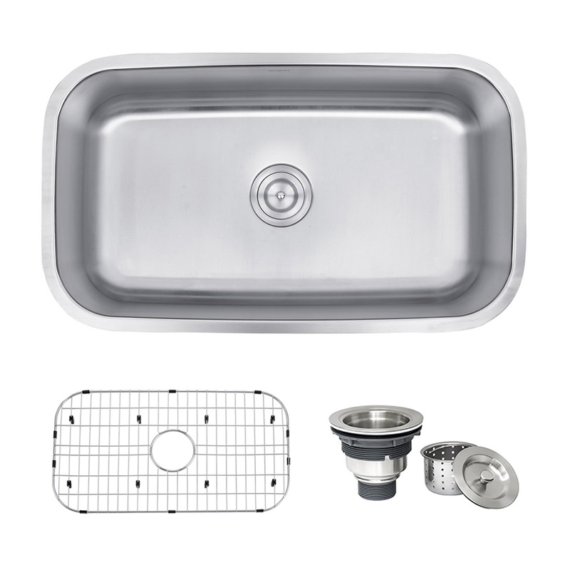 -INCLUDED IN BOX: Sink, cut-out template, mounting brackets, rinse grid, basket strainer.