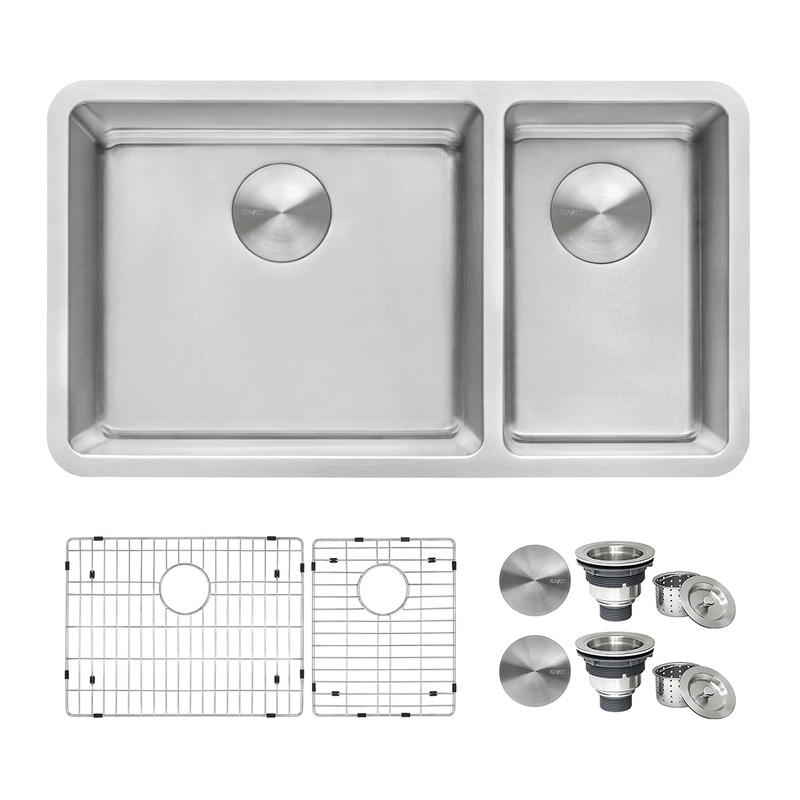 Ruvati RVM5300 Features: Covered under Ruvati's limited lifetime warranty Constructed from 16 gauge stainless steel Undermount installation sink will install under the countertop Sink features dual basins with a 70/30 basin split Sound absorbent constructi