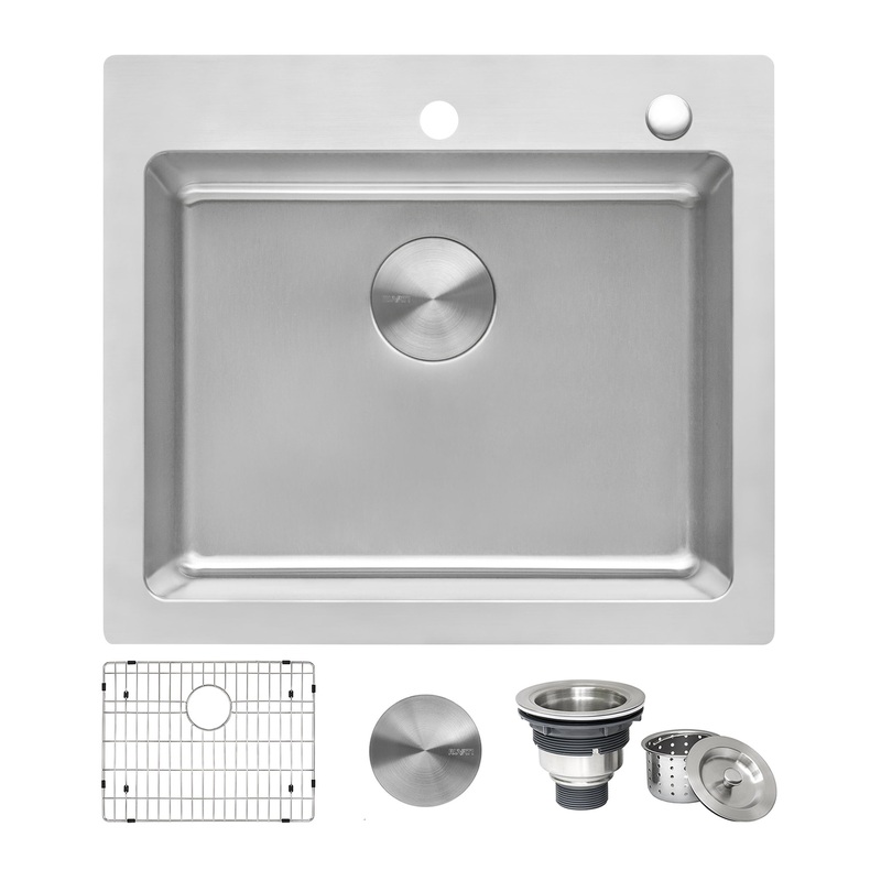 Ruvati RVM5923 Features: Covered under Ruvati's limited lifetime warranty Constructed from 16 gauge stainless steel Drop In installation sink will drop into a cutout in the countertop Single basin design for maximum work space Sound absorbent construction