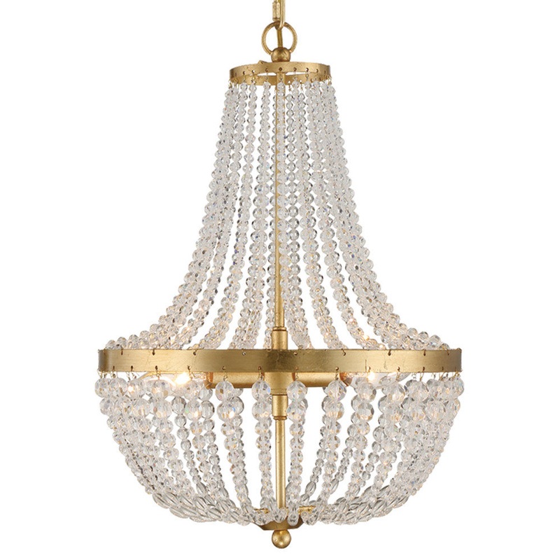 A traditional Empire shape meets modern elements in Crystorama’s Rylee Collection. A circular-shaped hand painted frame gives this fixture a vintage, distressed look, while the beads lend to a bohemian style flare. In a perfect combination of texture and materials, the Rylee creates a rich visual impact to any space.