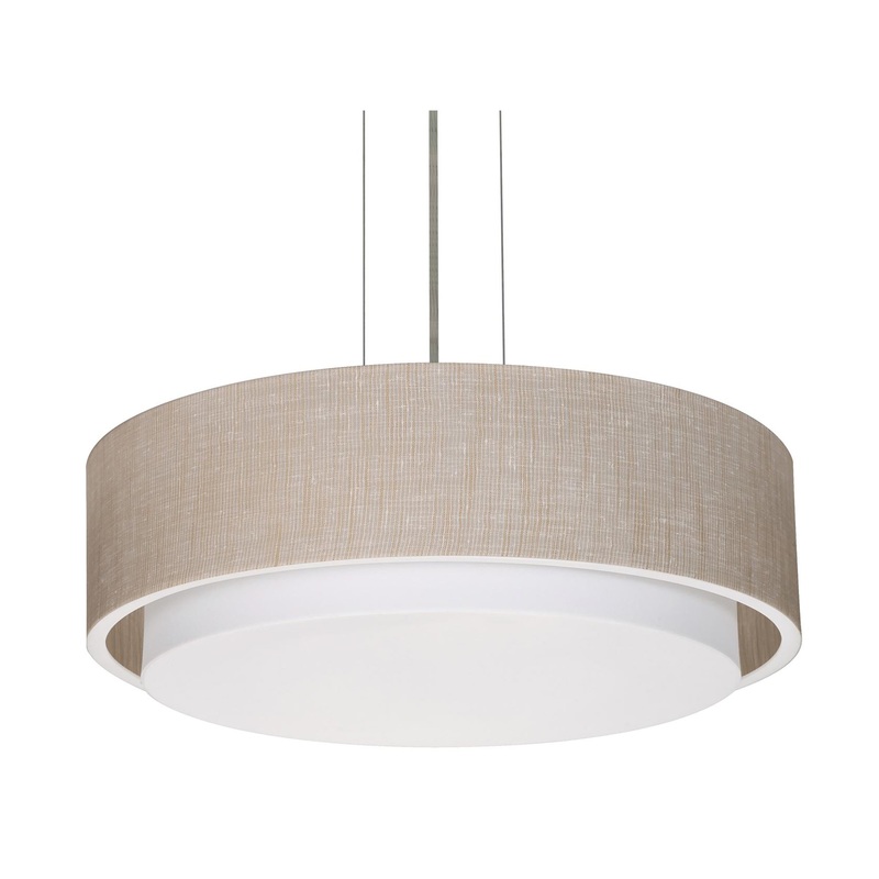 This modern double layer drum design provides a dramatic look and features Lumafuse laminated fabric/acrylic shade.