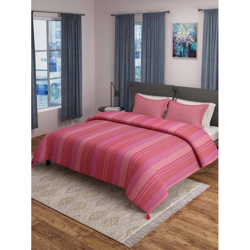 Elegant and attractive, this pink double size bedsheet set from Saral Home will hug the bed perfectly. Exuding a striped pattern, this set comprises 1 bedsheet and 2 pillow covers that will add class to your room. This set is crafted from cotton will be so