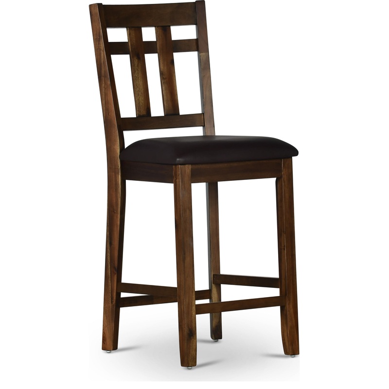Rustic styling abounds in the Saranac Counter Height Dining Chairs. Counter height chairs features easy-care upholstered polyurethane seats with arts and craft influenced back slats and stretchers for added strength and comfort. The warm mocha finish is ac
