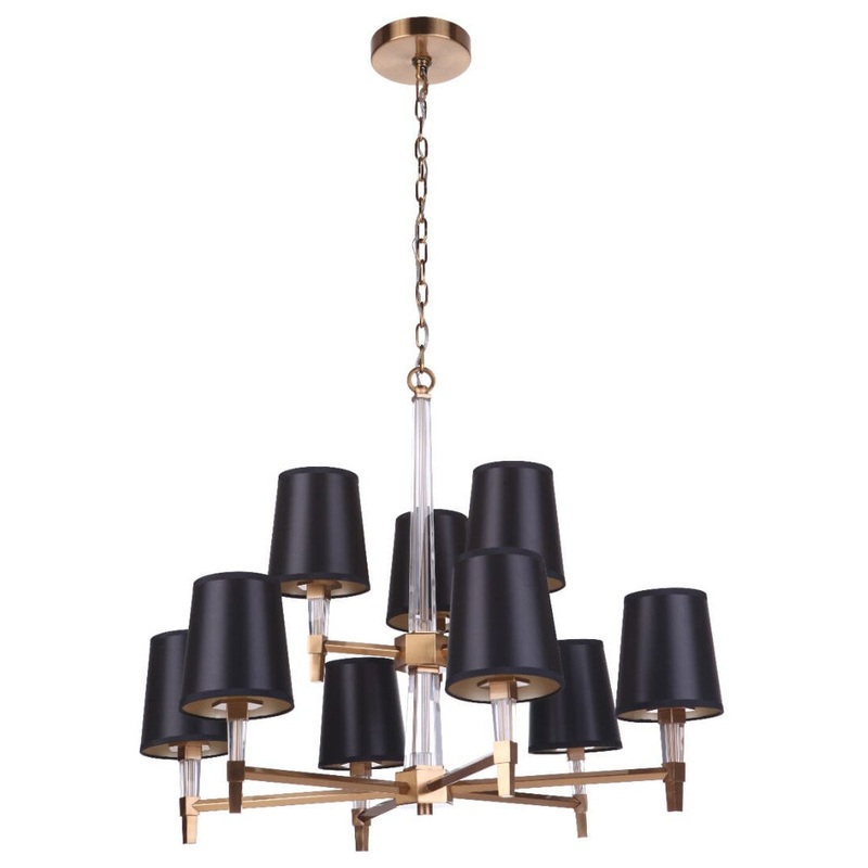 Transform your living space into a haven of elegance and sophistication with the breathtaking nine light chandelier from the coveted tarryn collection by craftmade exquisite craftsmanship and timeless design come together in this stunning piece, its satin brass finish evoking the opulence of a bygone era, bringing a touch of luxury to any room, whether it’s a formal dining area, a coffered ceiling, or a grand foyer, this show-stopping chandelier is sure to be the centerpiece of your home’s dcor, its nine gleaming lights casting a warm, inviting glow that’s nothing short of enchanting. This light requires 9 , 60 Watt Bulbs (Not Included) UL Certified.