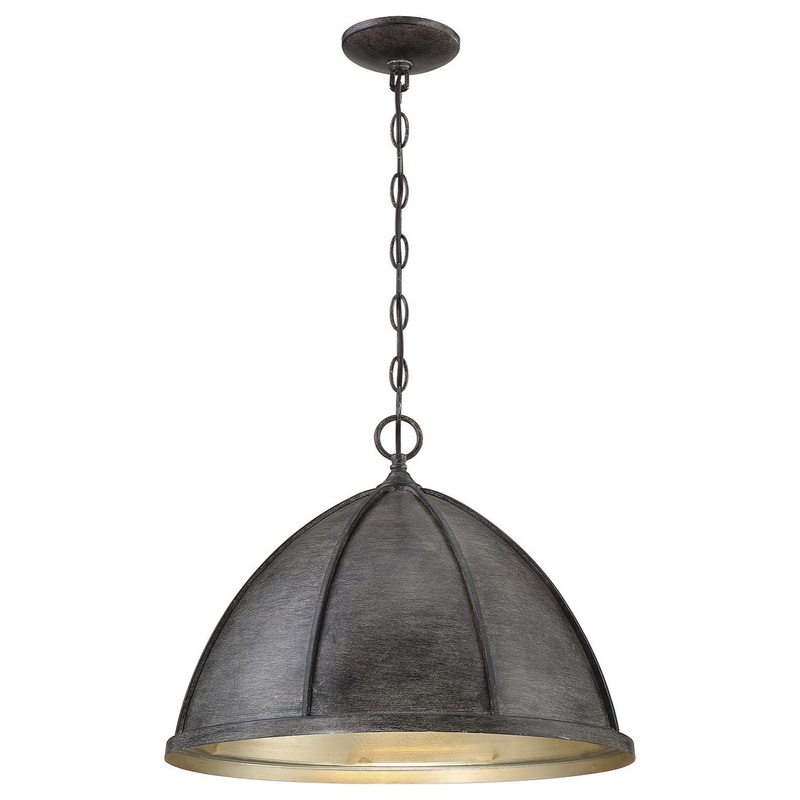 The neutral palette of the Laramie Collection`s one-light pendant complements a variety of d?cors. Measuring 18`` wide x 13`` high, the pendant provides illumination from one 60-watt Edison-base bulb. The Chelsea Walnut finish works well in rooms with warm