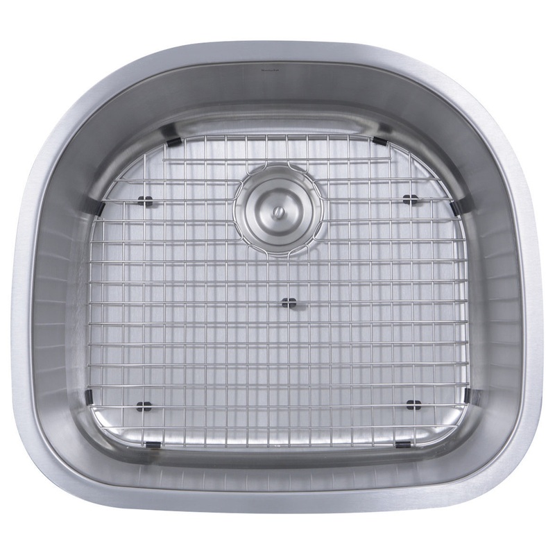 Undermount, D-Bowl Shaped Kitchen Sink. The perfect everyday single bowl kitchen Sink. It’s unique shape allows for it to fit into smaller spaces or tighter layouts while still being big enough to get the job done. Colander drain and bottom grid is included with sink. Nantucket Sinks stainless steel sinks have thick rubber dampening pads to dampen sound. Our finishing process helps keep our stainless steel corrosion-resistant to rust and oxidation. The satin finish makes daily maintenance a simple rinse.
