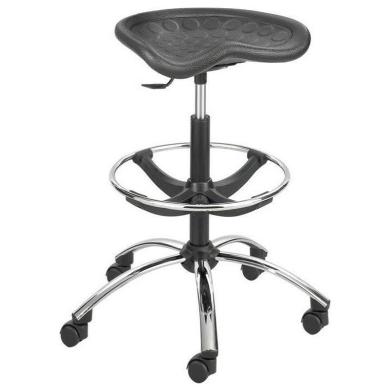 Repetitious movements can hammer the body, causing workers to ache and constantly shift positions. Construct your industrial inspection, assembly and receiving areas using products that help them hang tough while they’re hanging in there. Designed for comfort, safety and durability, this unique seating is perfect for a wide range of activities in any facility. The offers a soft, polyurethane, oversized tractor-shaped seat constructed of PVC coated gel molded on a metal frame. 5-star polished chrome base with raised adjustable foot ring and carpet casters. Some assembly is required.