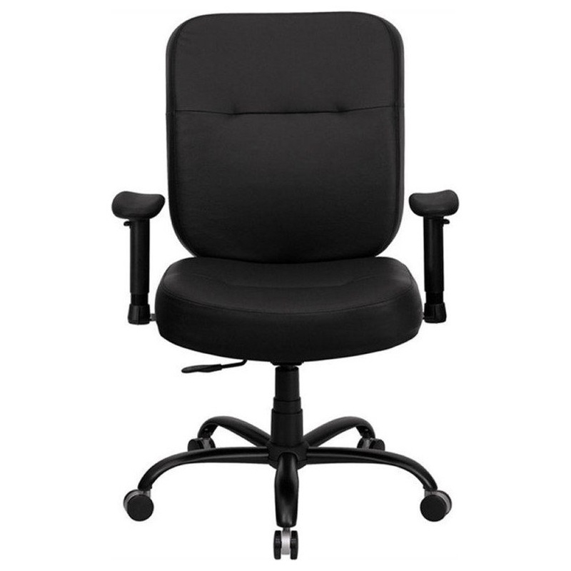 -Black leather office chair with arms
