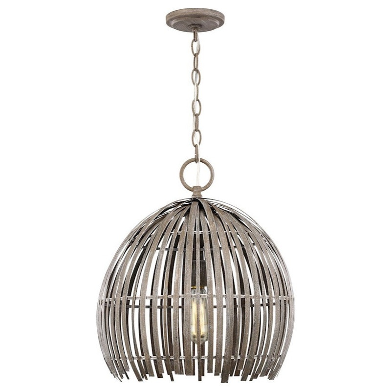 The Sea Gull Collection Hanalei one light indoor pendant in Washed Pine is a modern interpretation of layers of a natural, loosely woven basket. With multiple layers and varying lengths, the pendants give visual texture and depth.