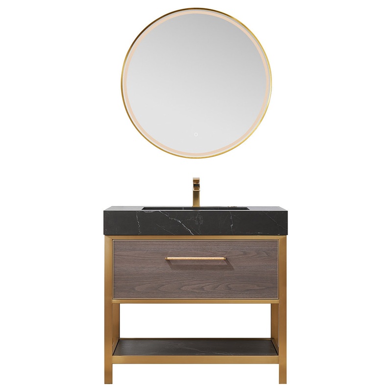 With its clean lines and understated elegance, the Segovia Bathroom Vanity is a beautiful and practical addition to your contemporary guest or master bath. The vanity top is constructed of ultra-durable, lightly veined sintered stone that repels stains and scratches. The soft-closing drawer(s) keeps toiletries concealed, while lower open shelving provides the perfect spot for rolled towels and decorative trinkets.