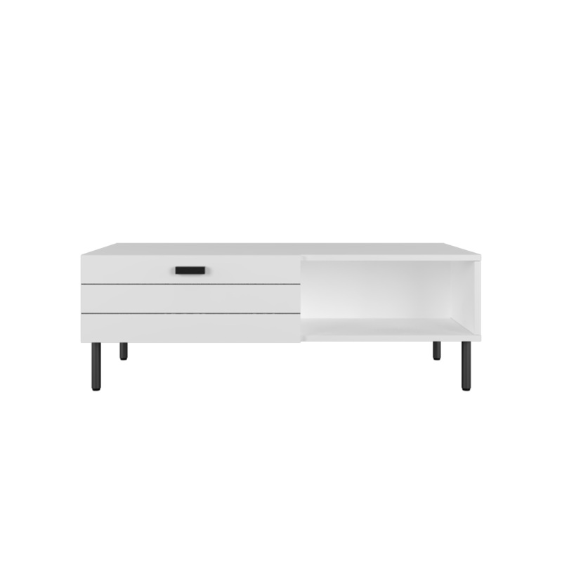 Self-assembly is requiredSimple modern designMelamine BoardWood Handle and Metal Leg SupportCoffee Table with1 Drawer and Open StorageProduct Dimension : L100 x W55x H37.6cmDelivery Term & Conditions :Surcharge of $30 applicable if customer request deliver