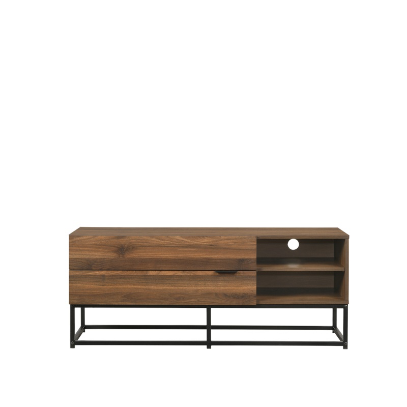 Self-assembly is requiredBlack PVC Handle and Metal Leg FrameExtraordinary WoodgrainTV Cabinet with 2 Drawers and Open ShelfProduct Dimension TV Cabinet : L120 x W42 x H50 cmDelivery Term & Conditions :Surcharge of $30 applicable if customer request delive