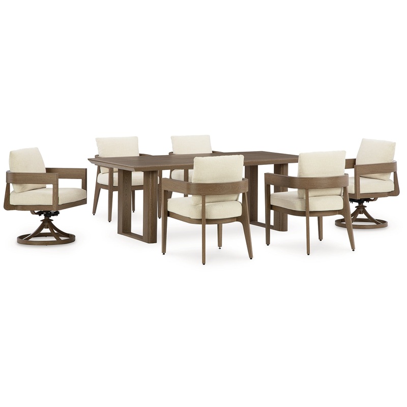 Elevate the appeal of easy-breezy living with this outdoor package. Made to look like wood yet durable enough to weather the elements, this furniture is sure to serve you and your besties well, year after year. The gently curved chairs feature cushions wra