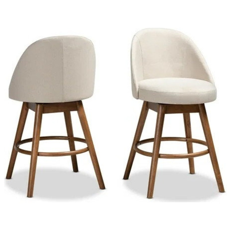 Set of 2 Mid-Century Modern Swivel Counter Stools in Walnut Finish – Midcentury – Bar Stools And Counter Stools – by Declusia-WMEF0324-285343285