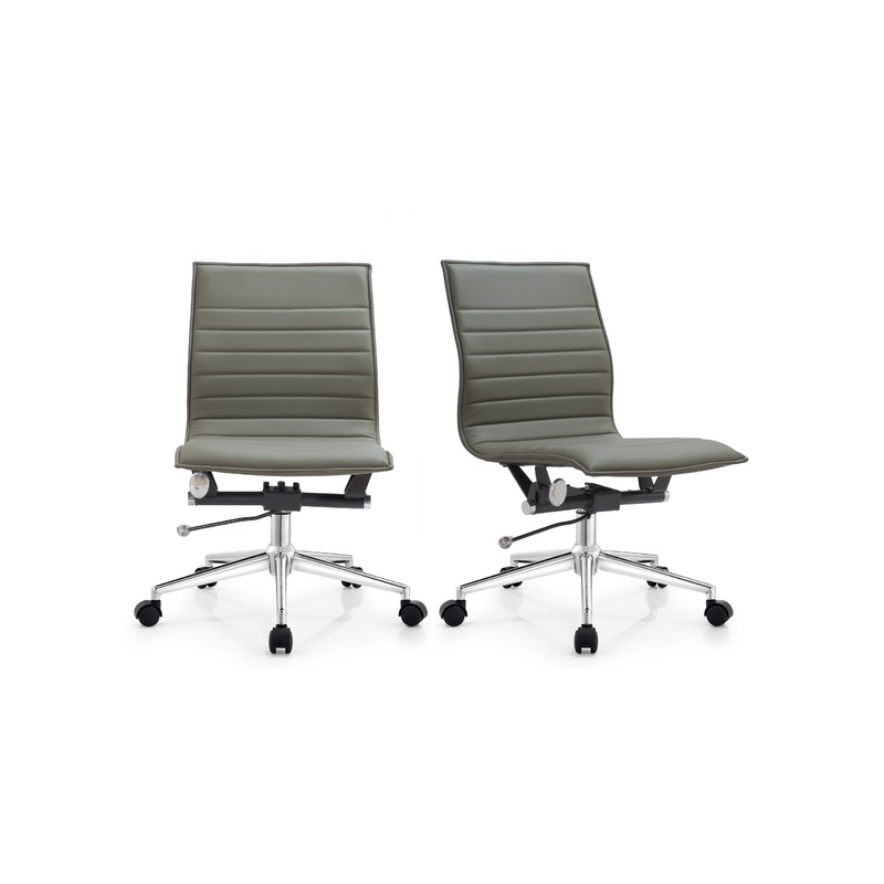 Set of 2 Modern Ergonomic Office Chair Armless Mid Back Ribbed PU Leather – Contemporary – Office Chairs – by 2xhome