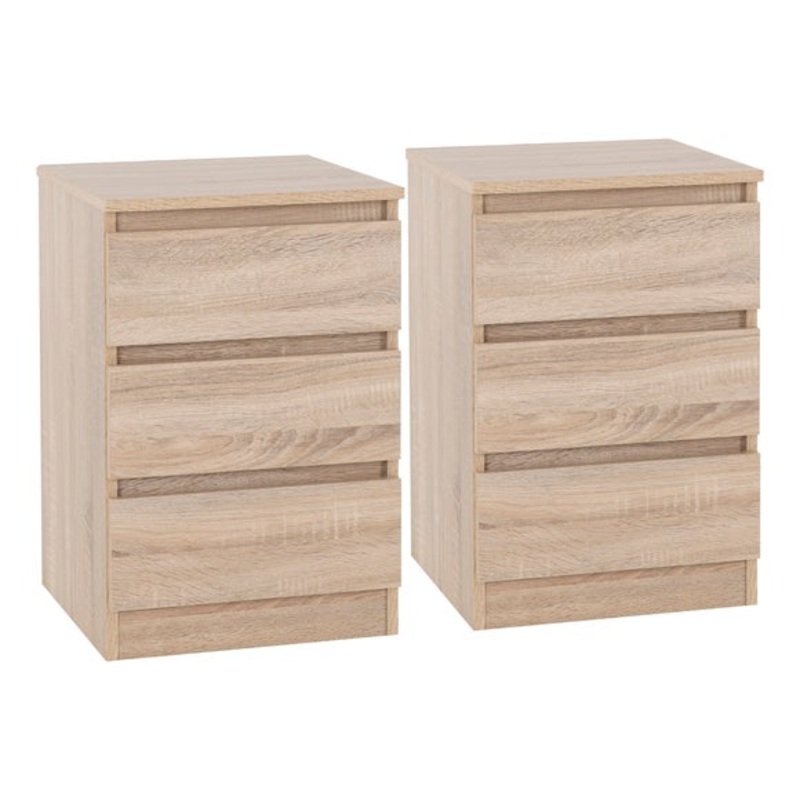 2 x bedside tables3 spacious drawers eachQuick assemblyThis set includes two bedside tables, each featuring three spacious drawers for convenient storage of bedside essentials. Crafted with a focus on both functionality and aesthetics, these bedside tables