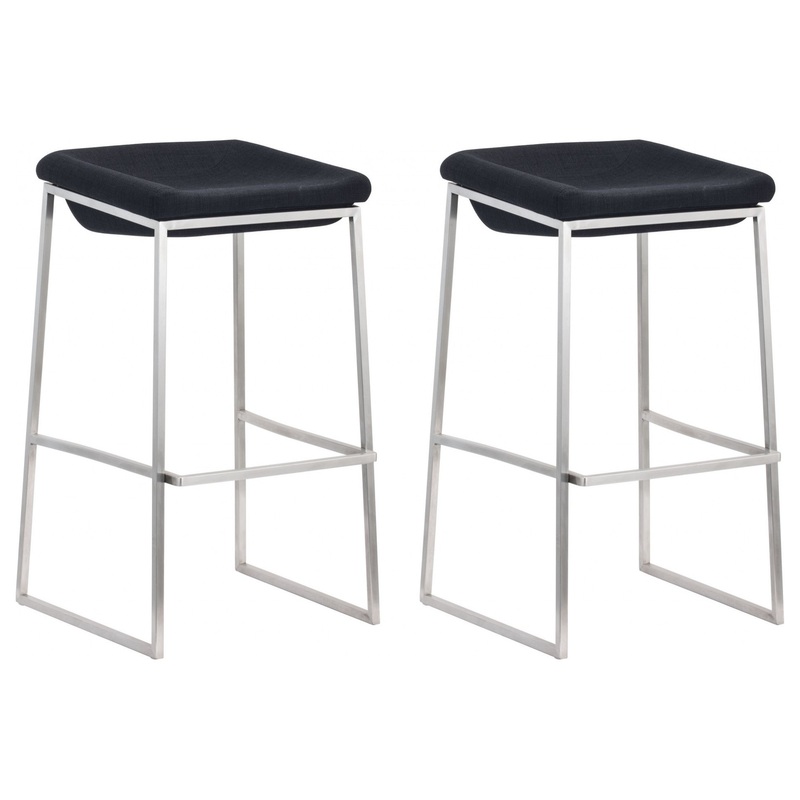 Minimal and modern, these Dark Gray and Stainless Indented Bar Height Stools are a cool way to accent your kitchen, living room, or bar lounge area. The open and airy geometric design stainless steel base features a footrest for comfort. The unique seat is an indented cushion wrapped in soft polyester fiber that will keep you stylishly comfortable. 29.9″ x 15.7″ x 18″ each. Set of 2.