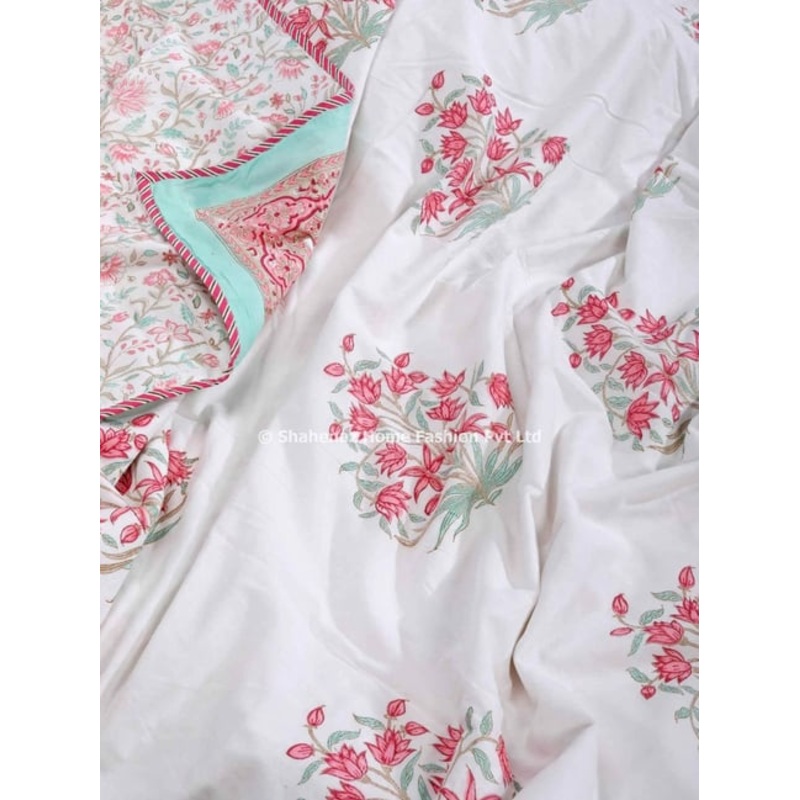 Immerse Yourself in Blossoming Elegance: Aafirah Pink Dohar. Unwind in a haven of soft hues with the Aafirah Pink Dohar. Crafted from 100 percent breathable cotton muslin, this lightweight coverlet features a captivating hand-block printed design in a deli