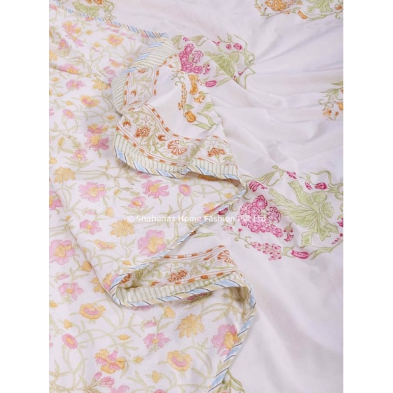 Unwind in Mustard Sunshine: Angarika Phool Mustard Reversible Cotton Muslin Dohar. Indulge in the luxurious comfort of the Angarika Phool Dohar, handprinted on pure cotton muslin. This reversible dohar features a captivating floral design in a warm mustard yellow, perfect for adding a touch of elegance and sophistication to your bedroom. The dohar is reversible, allowing you to choose between the charming floral pattern or the calming solid mustard yellow. Made from 100 percent cotton muslin, this dohar is breathable and lightweight, ensuring you stay cool and comfortable throughout the night.