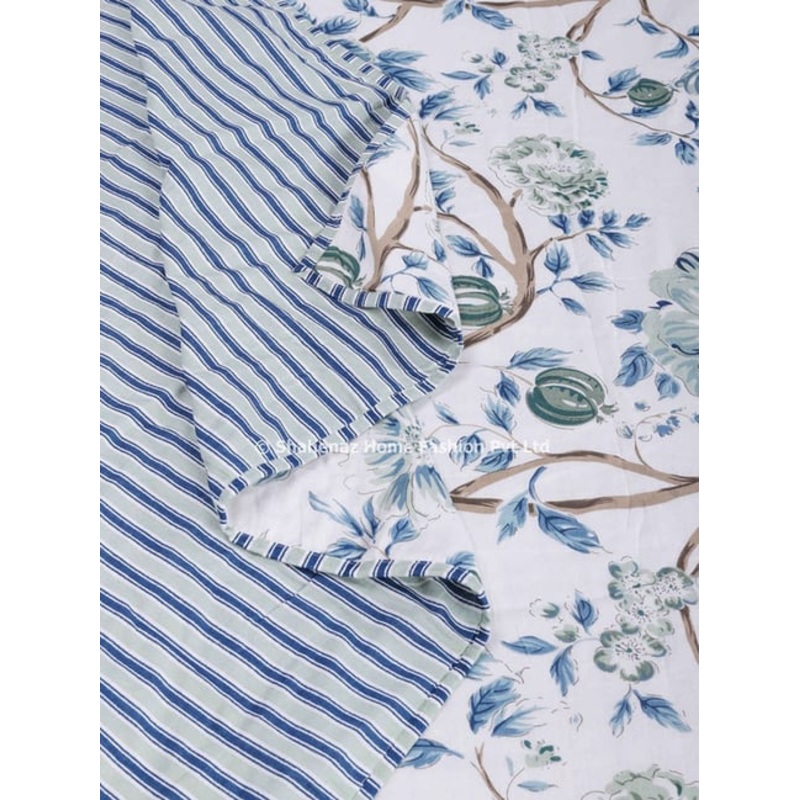 Unwind in Sunshine & Style: Calendula Print Dohar. Immerse yourself in a burst of sunshine with the Calendula Print Blue Dohar. Crafted from 100 percent breathable cotton muslin, this lightweight dohar features a captivating calendula floral design in a calming shade of blue. Double the Delight, Reversible Design: One side showcases the enchanting calendula floral design, adding a touch of cheer to your bedroom. Flip the dohar to reveal a stylish stripe pattern in contrasting colors, offering a versatile look to complement your mood or dcor.