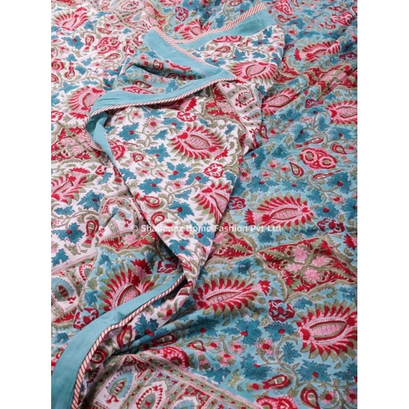 Immerse yourself in the serene beauty of the coast with the Charmine Dohar, crafted from 100 percent breathable cotton muslin. One side features a captivating print of delicate flowers in calming shades of turquoise, reminiscent of a tropical paradise. The