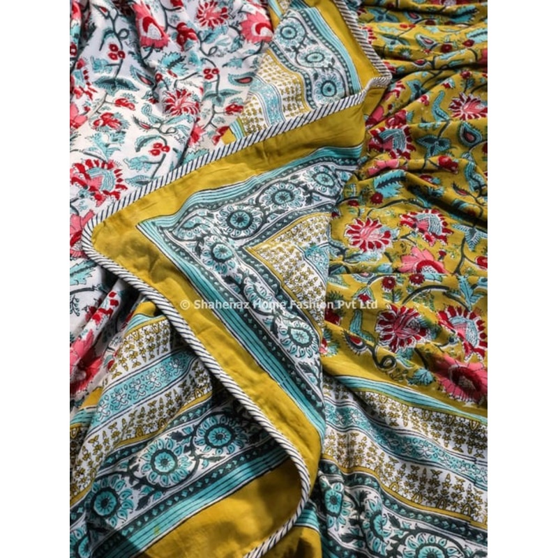Shahenaz Sunderban Bagh Floral Mustard Cotton Single Reversible Dohar
