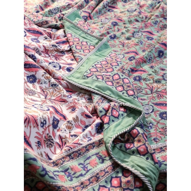 Immerse Yourself in Lush Serenity: Sunderban Lily Dohar (D13). Woven from 100 percent breathable cotton muslin, the Sunderban Lily Dohar evokes the tranquility of the Sundarbans mangroves. This lightweight coverlet features a captivating hand-block printed