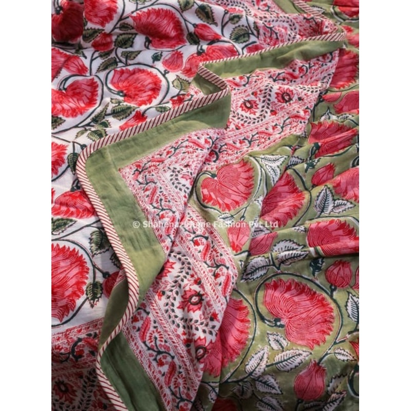 Immerse Yourself in Sundrenched Fields: Sunderban Sunflower Dohar. Woven from 100 percent breathable cotton muslin, the Sunderban Sunflower Dohar brings a touch of sunshine to your bedroom. This lightweight coverlet features a captivating hand-block printed design of cheerful sunflowers, edged with a charming striped flange. A Celebration of Summer’s Bounty: The dohar showcases luxuriously soft cotton layers, meticulously stitched together. The top layer boasts a captivating hand-block printed design featuring blooming sunflowers.