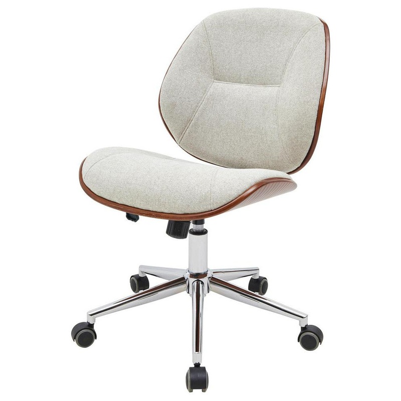 Give your home office an upgrade with Shaun swivel task chair. Its crafted from a bamboo shell thats topped with a chic fabric that stands up to everyday use on chrome casters. The seat height adjusts from 20 inches to 24 inches. Assembly required, available in Black Faux Leather/Walnut and Havana Linen Fabric/Walnut finish.